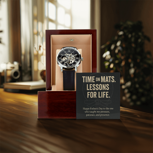 Men's Skeleton Watch – Luxury Jiu-Jitsu Father's Day Gift with Leather Strap