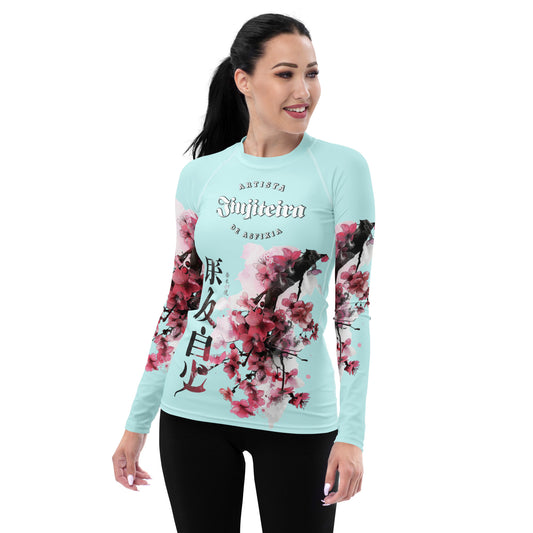 Women’s BJJ Rash Guard - Cherry Blossom Cyan | Stylish & Durable BJJ Gear