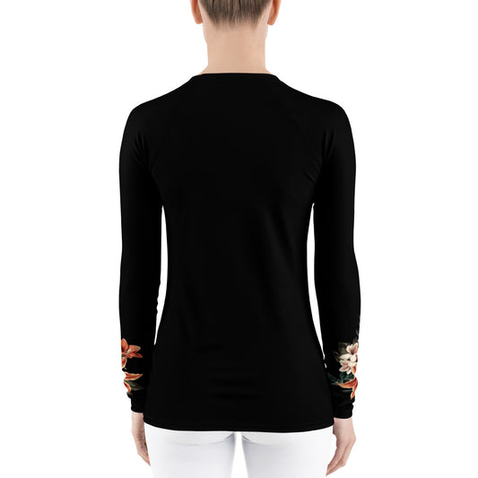 Women’s BJJ Rash Guard - JiuJitsu Tropical Black | Floral BJJ Gear | No-Gi Jiu-Jitsu Training Top