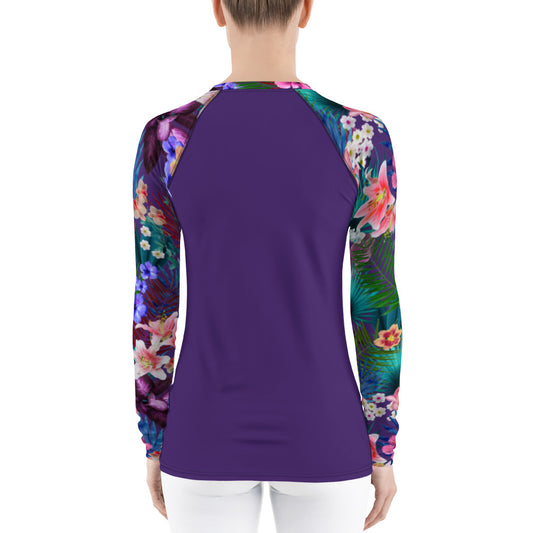 Women’s BJJ Rash Guard - Rank JiuJitsu Tropical Purple | Stylish BJJ Gear | No-Gi Jiu-Jitsu Training Top