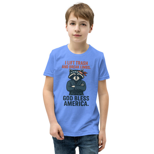 I Lift Trash and Break Limbs – Patriotic Raccoon Jiu-Jitsu T-Shirt, Youth Short Sleeve